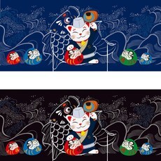 Gudaform 다찌노렌 네코이루마 일식 가림막 인테리어 커튼, GDZ-0302-네코이루마 네이비