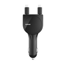 아이코모스 퀵차지3.0 듀얼 릴타입 고속 차량용 충전기 (C타입+C타입) 블랙 RCC03-05 C타입+C타입