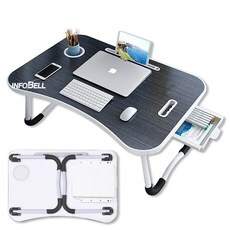 인포벨 더쎈 서랍형 다용도 접이식 테이블 스마트거치대 좌식 침대 책상 우드 블랙 아이보리